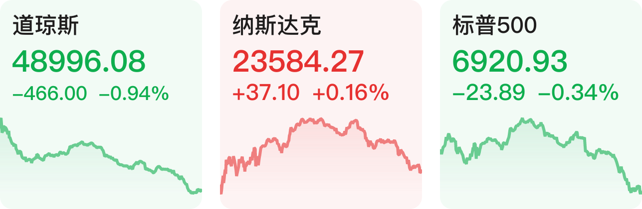 美股三大指数收盘涨跌不一,道指跌0.94%,纳指涨0.16%,标普500指数跌0.34%。大型科技股多数上涨,英特尔涨超6%,谷歌涨逾2%,微软涨超1%,亚马逊小幅上涨;Meta跌逾1%,苹果、特斯拉小幅下跌。热门中概股多数下跌,纳斯达克中国金龙指数跌1.58%,腾讯音乐跌超5%,贝壳、网易等跌超3%,金山云、阿里巴巴等跌超2%,哔哩哔哩等跌超1%,唯品会、理想汽车等小幅下跌;百度、蔚来小幅上涨。