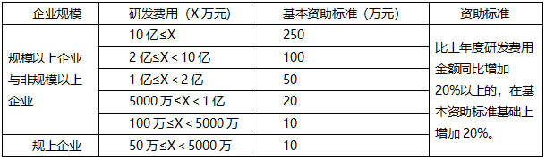 某地区高新技术企业培育资助标准